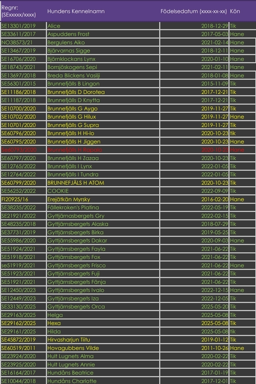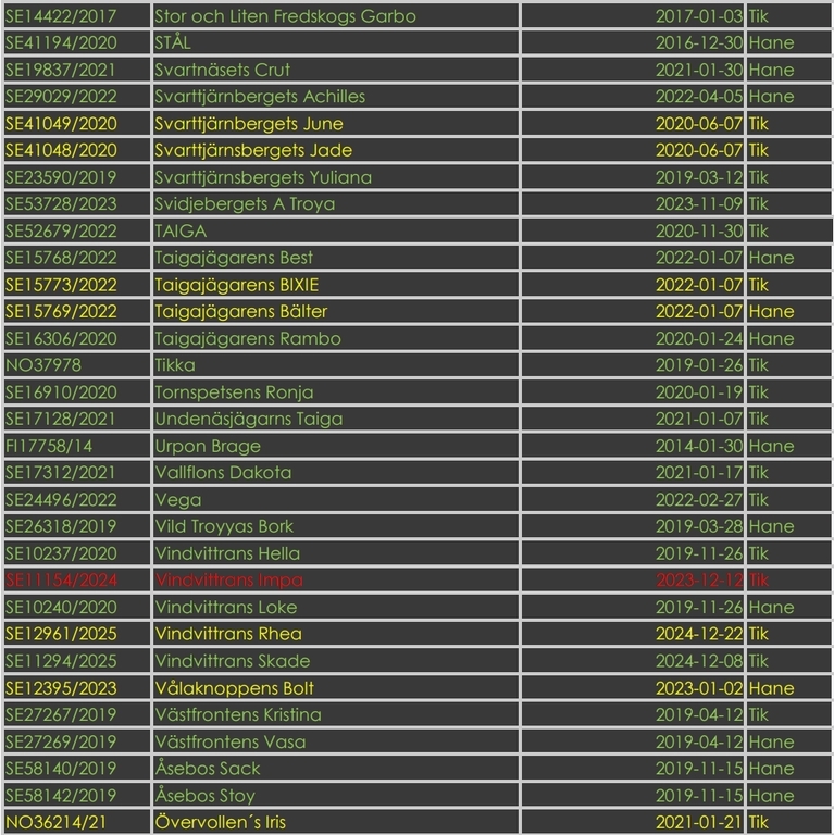 Täckhundslista Västlaika