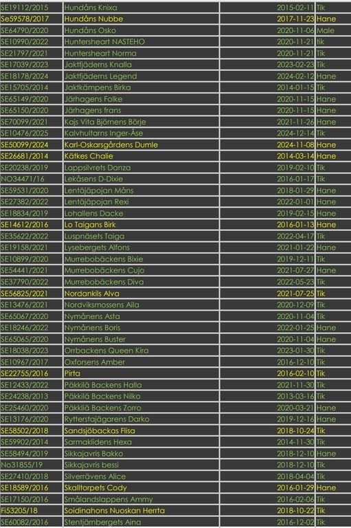 Unghundsstatistik, jaktprov 24/25